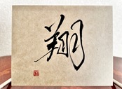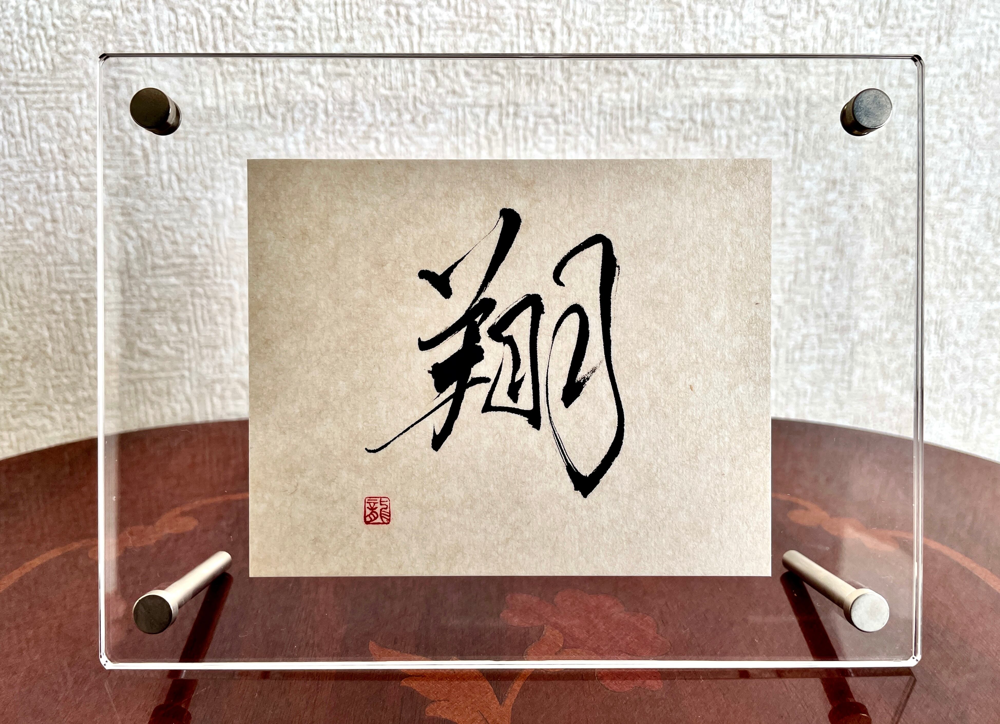 書道家 龍玄 タイトル : 『 翔 』 副 題 : ~ 目指す場所へ ~ 額の外寸 : 縦14.5cm × 横19.5cm × 奥行5.0cm 展示方法 : 置き型