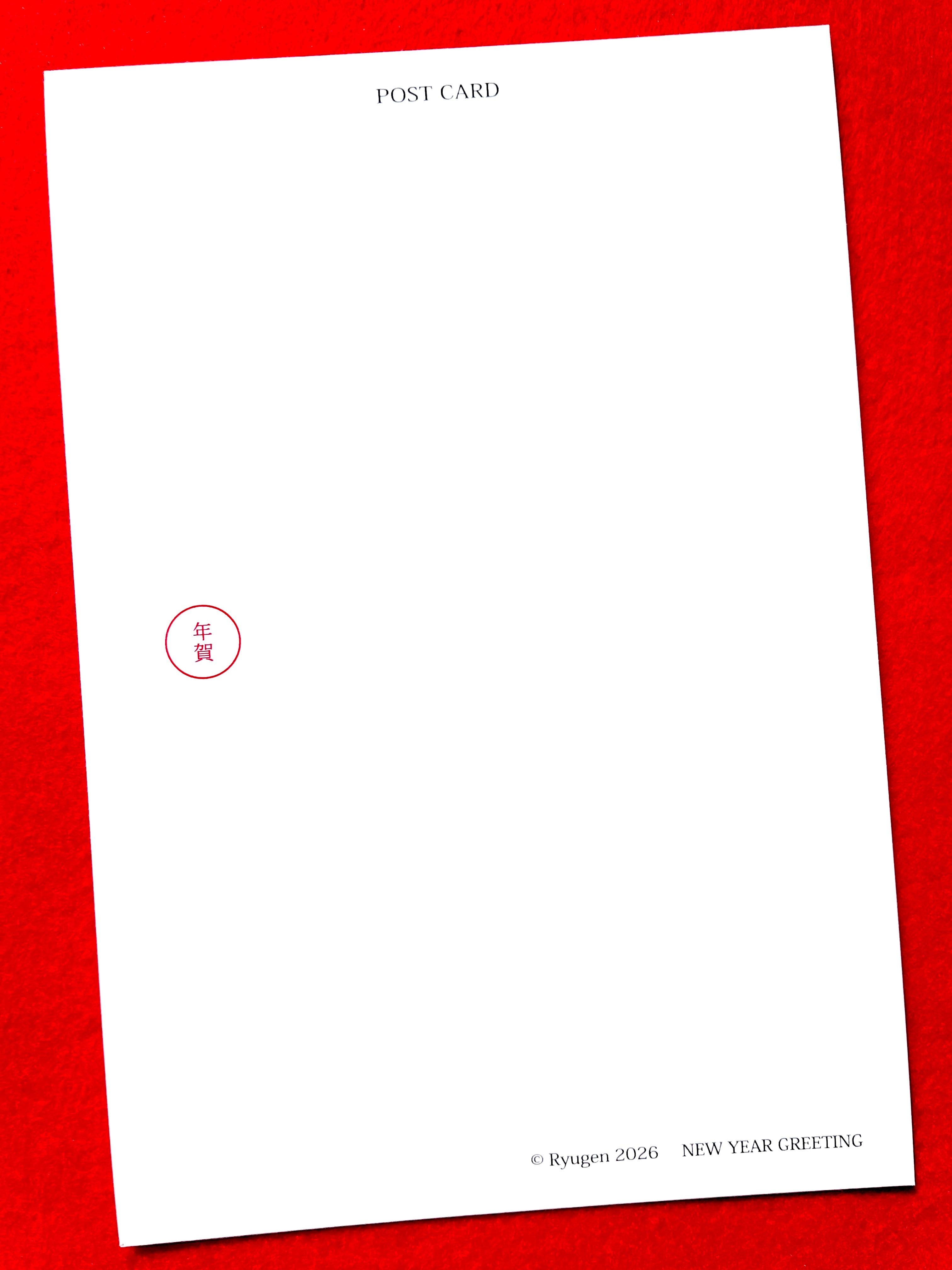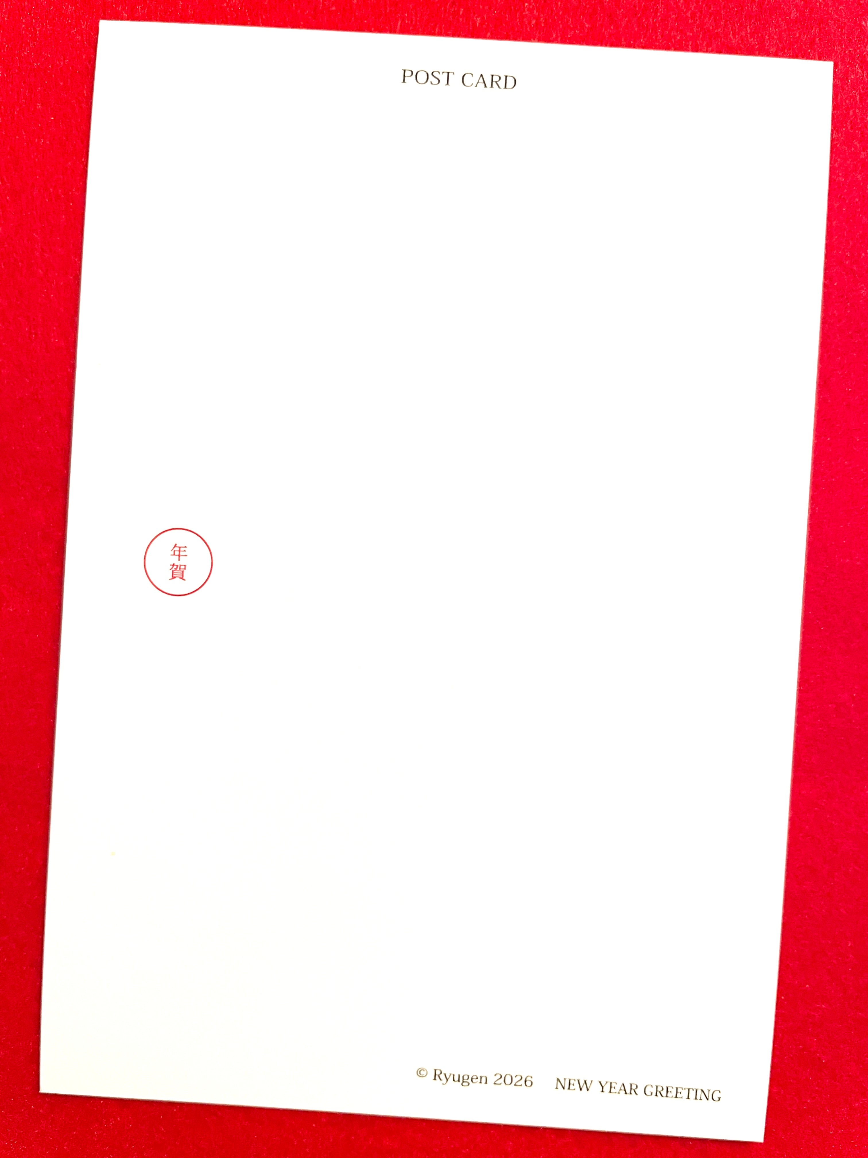 宛名面につきましては、大きめの「お年玉付き年賀切手」も貼ることが出来るよう「年賀」のマークをやや下の方に配置しております。